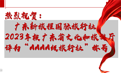 熱烈祝賀廣東新旅程國際旅行社獲得廣東省4A級旅行社榮譽(yù)稱號