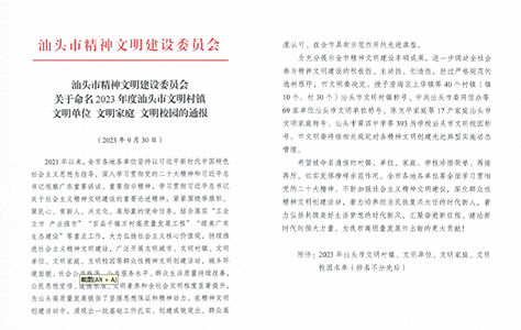 新旅程榮獲汕頭市精神文明建設委員會2023年度文明單位